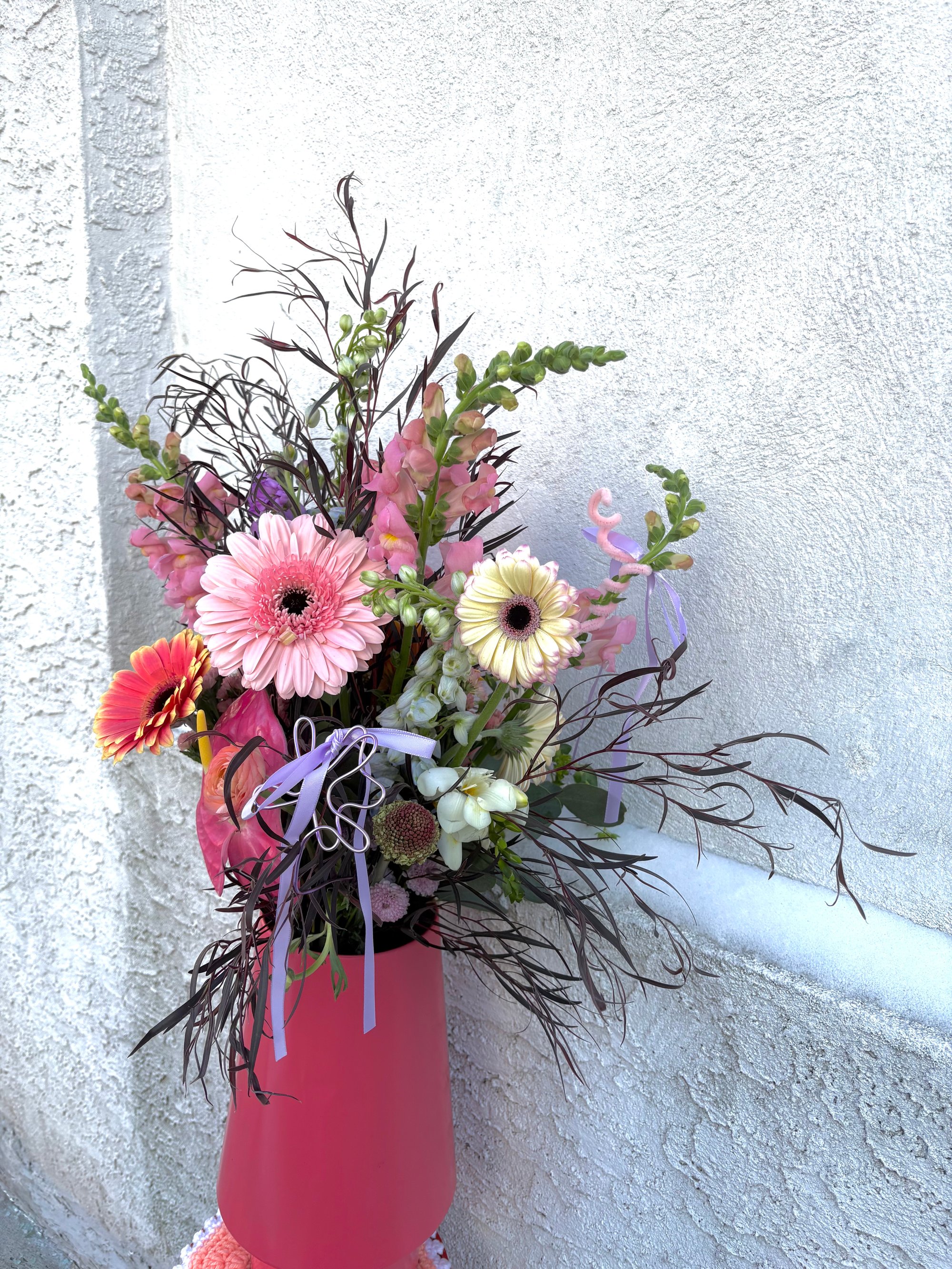 All flowers and colors are designers choice and will reflect a similar but not exact color palette.